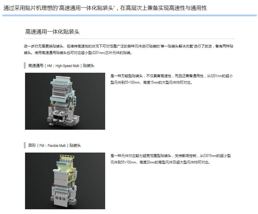 3."高速通用一體化貼裝頭”同時(shí)實(shí)現(xiàn)高速性與通用性,提供理想的解決方案".