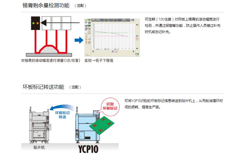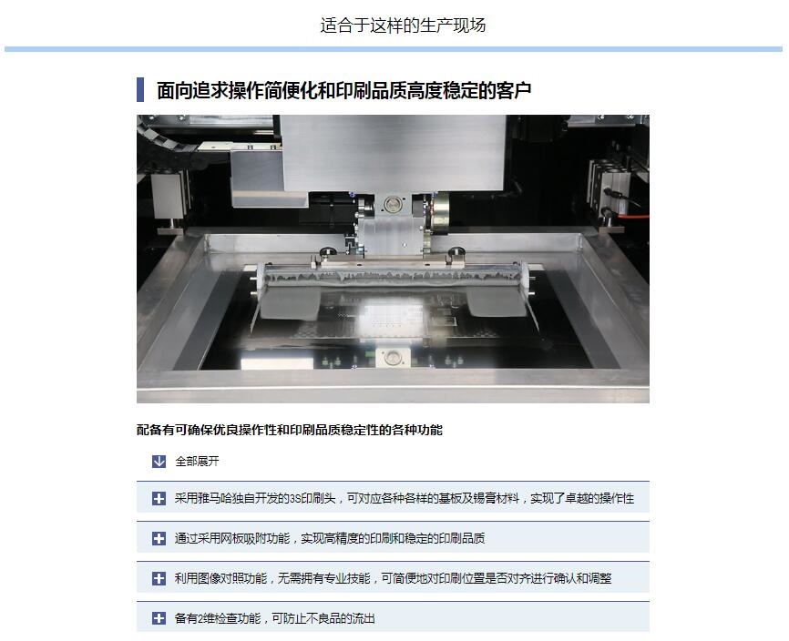 YCP10高性能小型印刷機(jī) 1.實(shí)現(xiàn)等同于上級機(jī)型的印刷質(zhì)量, 支持大型基板, 寬幅網(wǎng)板。2.承襲高端機(jī)的功能, 實(shí)現(xiàn)高精度, 高質(zhì)量的印刷。3.集高度通用性, 多功能于一體的小型機(jī)體。4.支持YAMAHA SMT生產(chǎn)線聯(lián)線功能, 實(shí)現(xiàn)高效生產(chǎn)。
